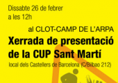 El passat 5 de febrer, la CUP es va presentar a les Corts. Tal com deia a la presentació Joan Agustí, la CUP és un espai de confluència de l’esquerra independentista i de les lluites socials. En el cas de Barcelona, la CUP fa una crítica al model de “Barcelona Museu” i proposa la reivindicació de la Barcelona de lluita i transformació social.